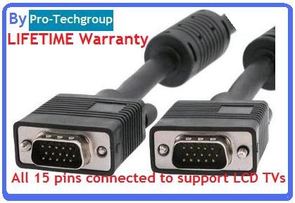 Pro-Techgroup 10 ft VGA SVGA UXGA Monitor Projector Cable - Coaxial (RGB type) and 4 twisted pair to support higher video resolution. LIFETIME Warranty Review